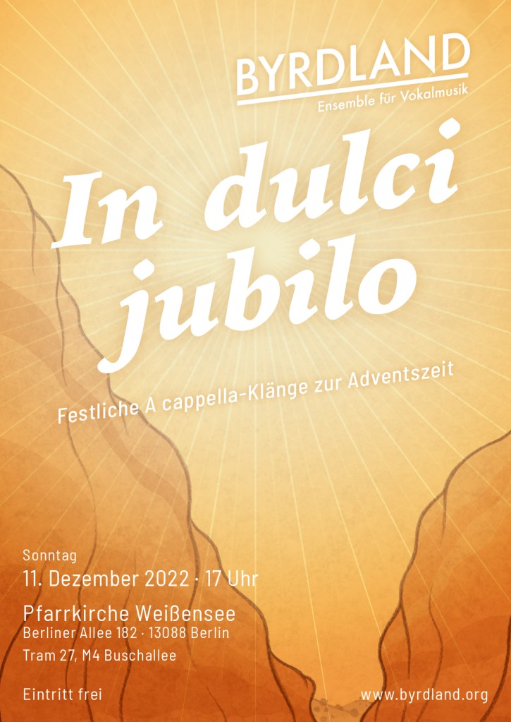 Und wer nicht genug bekommen kann… ein paar Stücke (und anderes) singen wir bereits zur hORA in St Matthäus am Sonntag vorher (4.12., 18 Uhr), die wir wieder einmal mitgestalten.